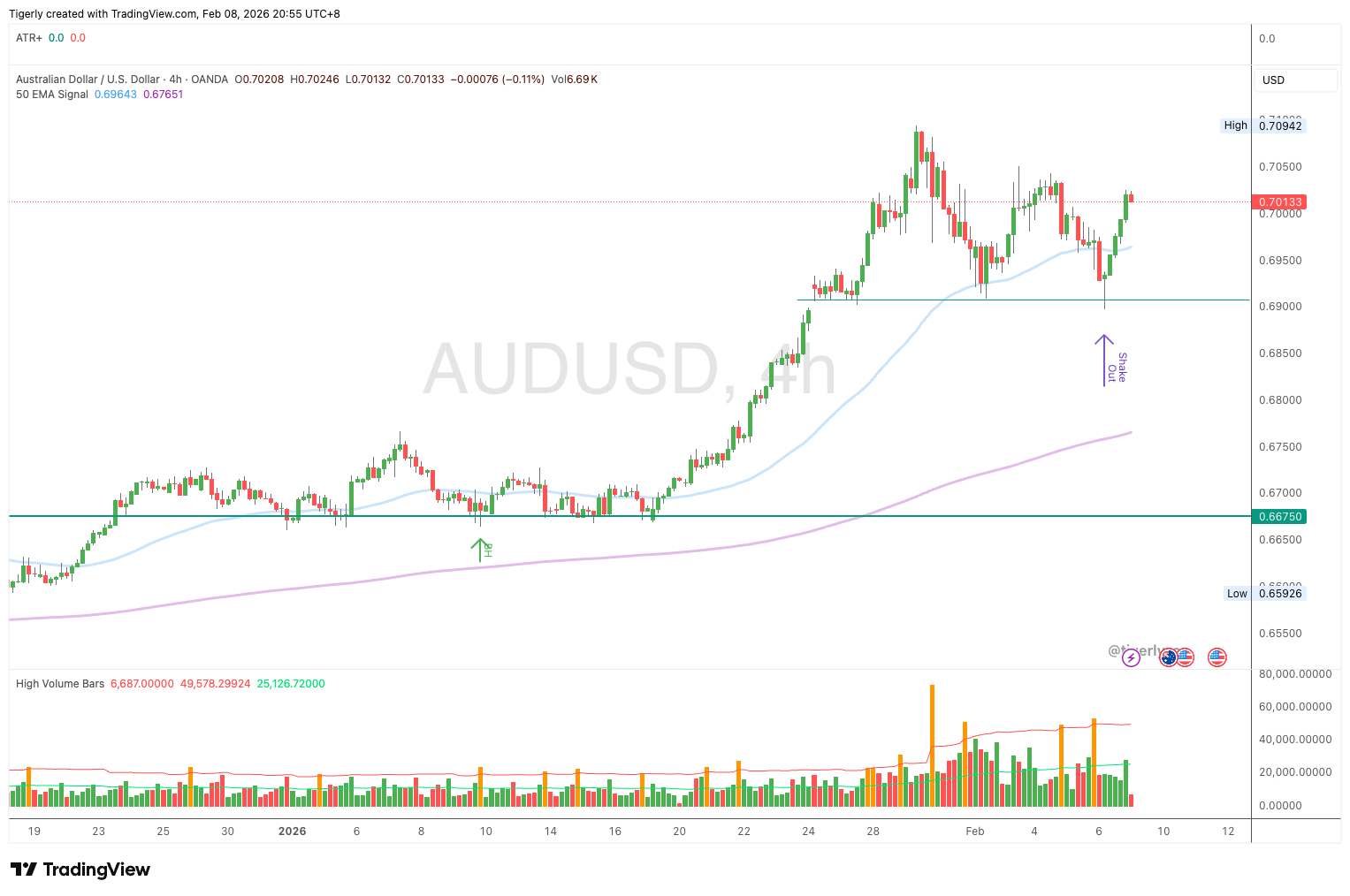 The AUDUSD has formed a strong bullish signal with a shakeout around 0.69 area. Strong buy signal. Here’s the full breakdown: