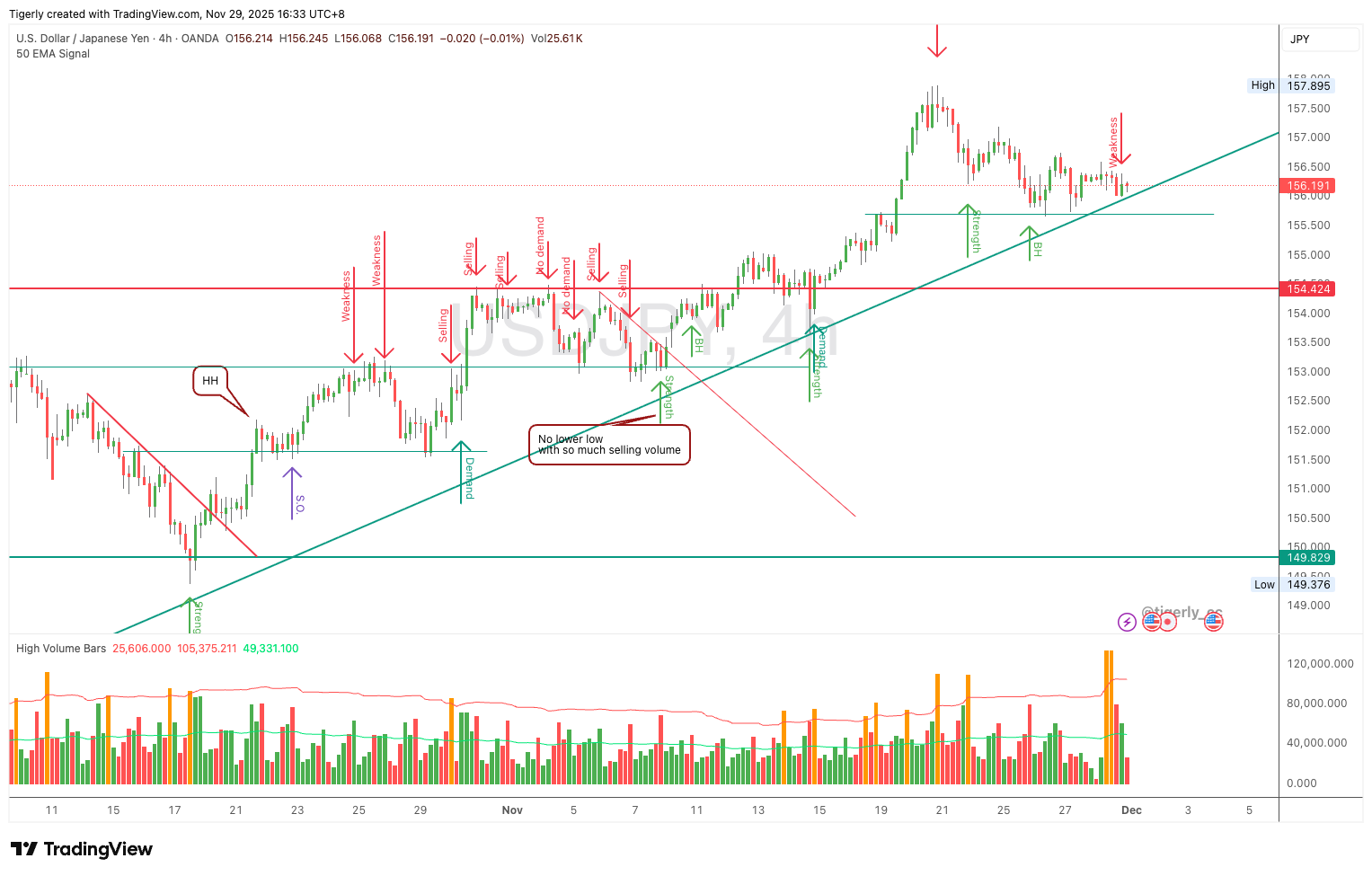 The USDJPY side way for the entire last week and now back to bullish trend line and also 156 support. Here’s the full breakdown:
